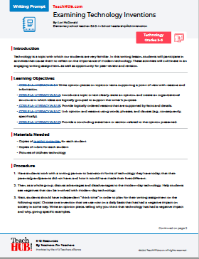 Technology is a topic with which our students are very familiar. In this writing lesson, students will participate in activities that cause them to reflect on the importance of modern technology. These activities will culminate in an engaging writing assignment, as well as opportunity for peer-review and revision.